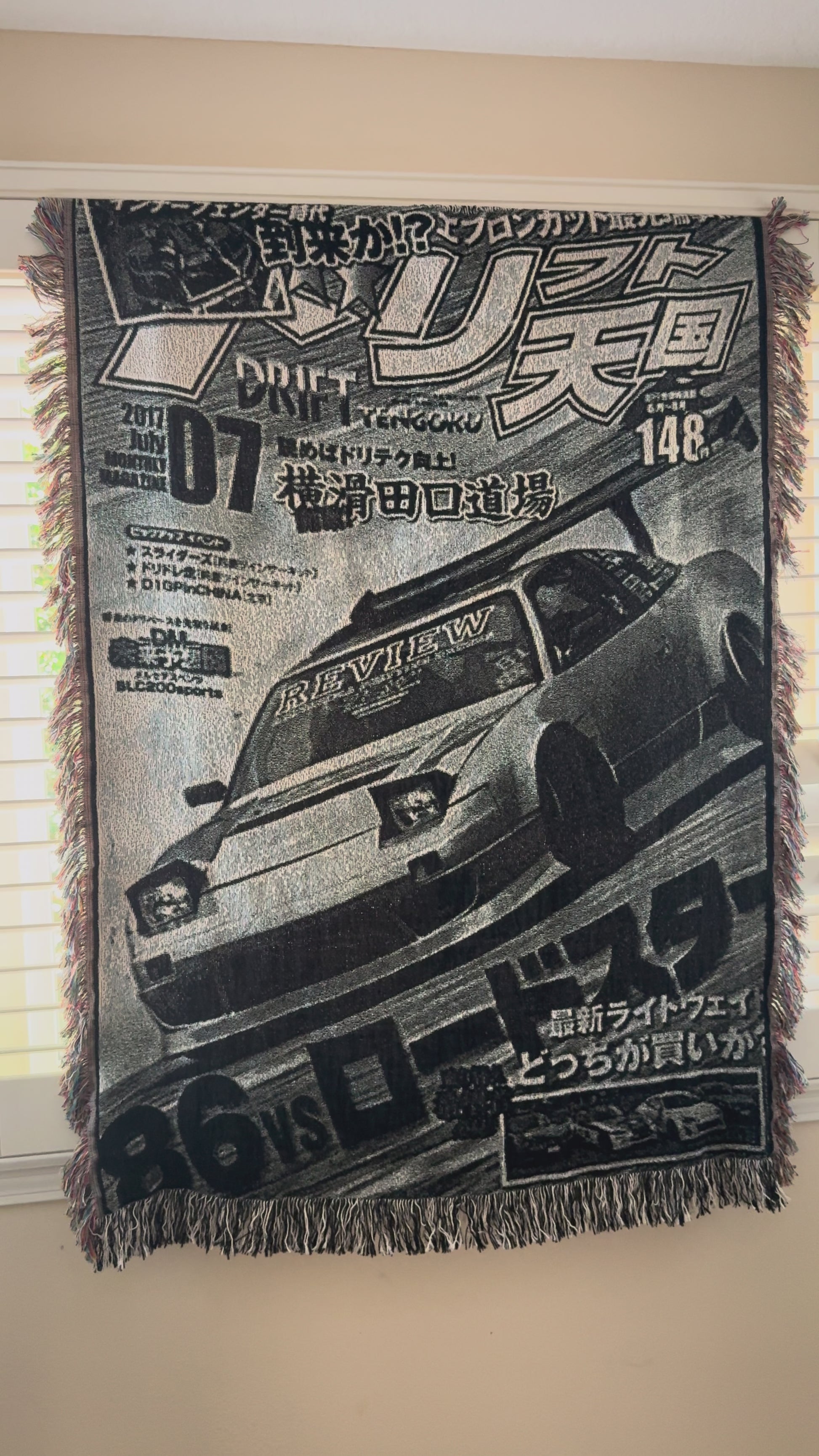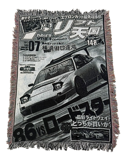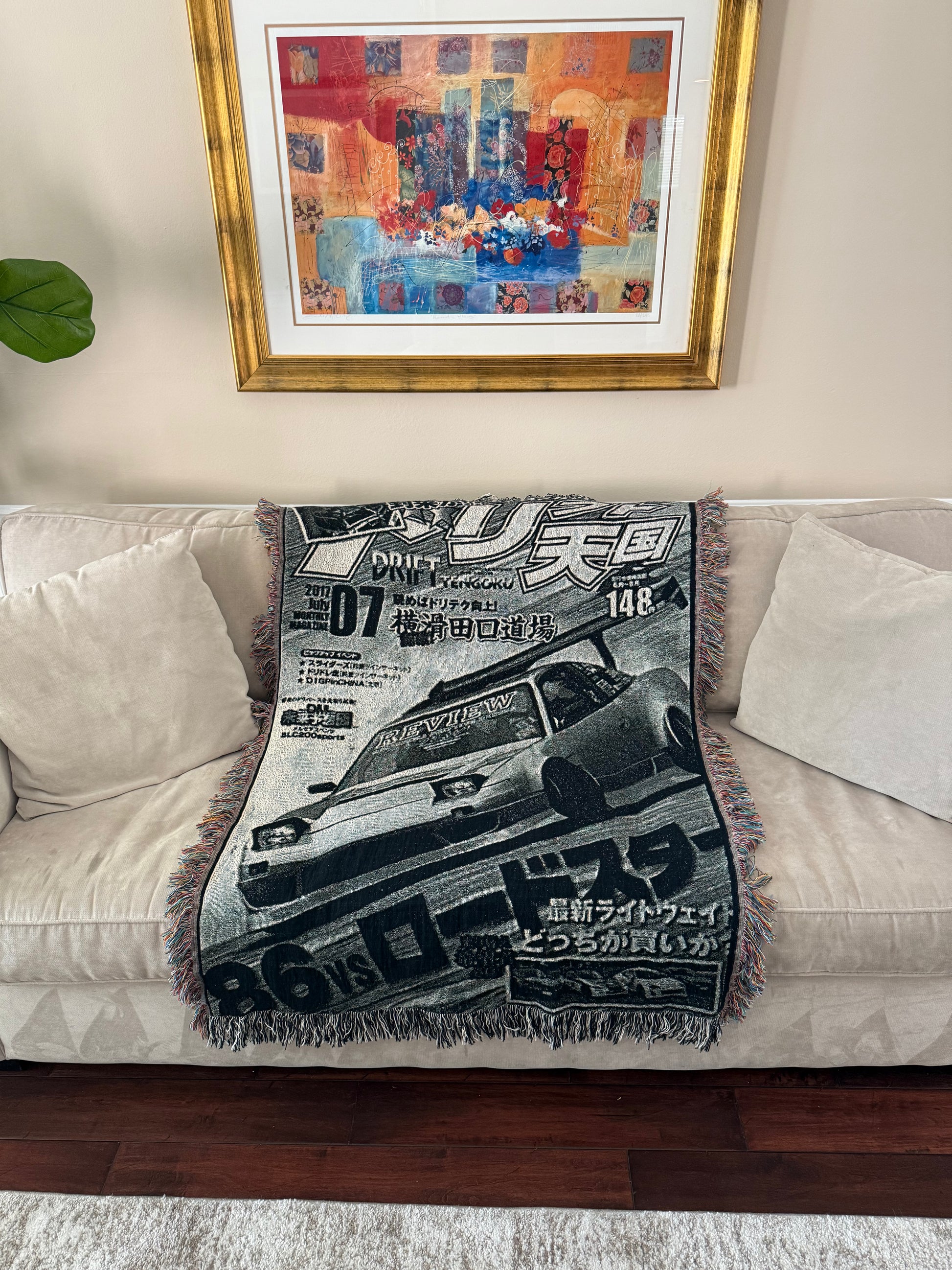 Crafted one at a time from soft cotton, this handmade woven blanket blends cozy comfort with the power of Japanese car art.